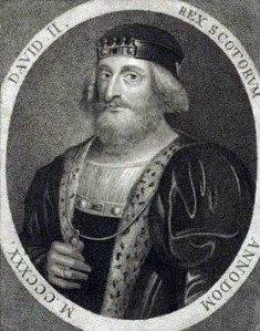 Following his wife’s death David II married his lover, Margaret Drummond, the widow of Sir John Logie, but divorced her on 20th March 1370. He died, childless, at Edinburgh Castle in February 1371, aged 47, and was succeeded by the first of the Stewart kings, his nephew, Robert II, son of Robert the Bruce’s eldest daughter, Marjorie.