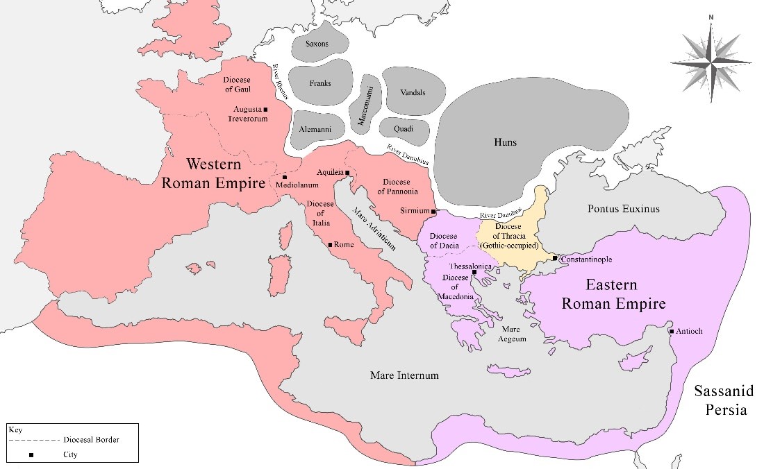 The late 4th Century AD was a tumultuous time for the Roman Empire. The ground shook and a distant thunder sounded as a new threat poured across the eastern horizon. The Huns swept towards Europe from the Eurasian steppe in an event we call the Great Migration. These skilled and fearsome horsemen trampled over every tribe they found – none of whom had an answer to the Hunnic mode of fighting – roving in packs, whirling lassos and loosing clouds of arrows on their stunned quarry. Tribe after tribe fell – butchered or subjugated. Next in the Huns’ line of sight were the Goths, a Germanic people who inhabited the land north of the River Danube (roughly modern Romania).