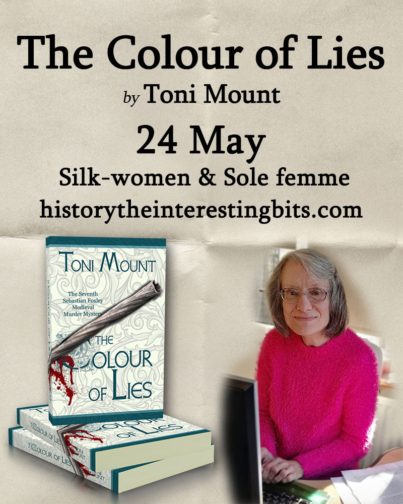 Today it is a pleasure to welcome author Toni Mount to History … the Interesting Bitswith a fascinating guest article based on her new novel TheColourofLies.