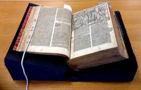 That would complete the process for a poster but, to make a book, this sheet of pages had to be turned over and printed again, this time with the text for the alternate pages. The sheets would then be cut up and assembled in the correct order. I have printed little eight-page booklets and the logistics of getting the double-sided pages printed correctly required a bit of thinking. For an A5 booklet, pages 8 and 1 have to be printed side by side, in that order, on an A4 sheet which is then turned over and pages 2 and 7 printed on the other side. Pages 6 and 3 are then printed with 4 and 5 on the reverse. I’m sure there must be computer algorithm for this these days but imagine trying to work that out with eight or sixteen pages on a sheet to produce the 1,500 pages of Foxe’s Book of Martyrs.