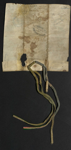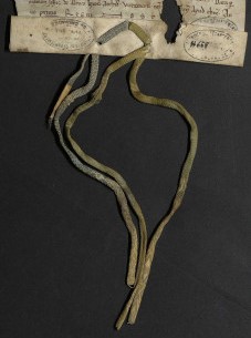Unfortunately, while the laces are still attached to the document, the words, which were still visible in the nineteenth century, have now faded away. At least someone thought to record them before they faded from existence.