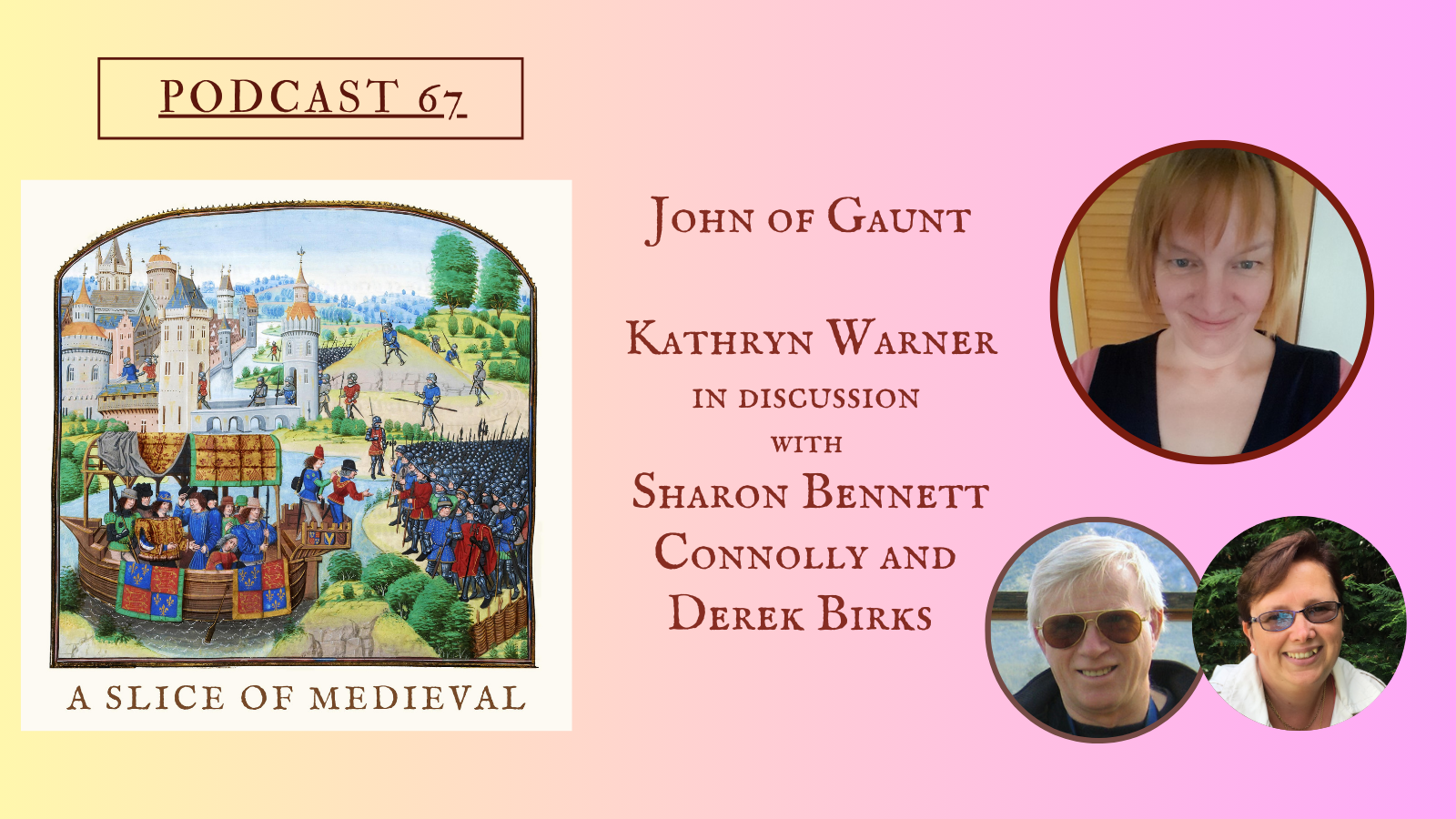Have a listen to the A Slice of Medieval podcast, which I co-host with Historical fiction novelist Derek Birks. Derek and I welcome guests, such as Ian Mortimer, Bernard Cornwell, Elizabeth Chadwick and Scott Mariani, and discuss a wide range of topics in medieval history, from significant events to the personalities involved.