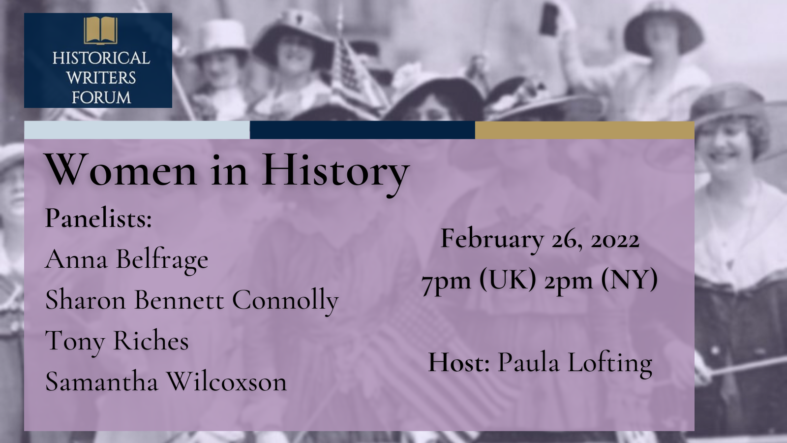 Historical Writers Forum continues its programme of talks this year, with one for Women’s History Month on 26 February 2022 at 7pm (UK time). Hosted by Paula Lofting, authors Tony Riches, Sharon Bennett Connolly, Samantha Wilcoxson and Anna Belfrage will discuss Women in History: a lively discussion, followed by an audience Q & A, on researching and writing about Women in History. Tickets are free and available through Eventbrite, so do come along if you can! If you can’t make it on the evening, don’t worry, the discussion will be uploaded to our YouTube Channel by 28 February (I hope!).