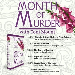 Toni: I read all I can around the subject; get a feel for the period and ‘live it’ in my head. As I write, if I realise I don’t know something, I make a note of it, check it out and list sources as I go. This is vital for a book which will have references and footnotes but even if I’m working on a novel, I may want to return to a source for further info or to mention it in my Author’s Notes – this is where I tell readers what’s true in the novel, which characters really existed, etc. In ‘The Colour of Darkness’, I did additional research into Medieval Mystery Plays and the ‘Duke of Exeter’s Daughter [a torture device], among other things. For the next novel, I’m reading up on medieval ships and firearms – I think it’s time somebody got shot with a ‘gunne’.